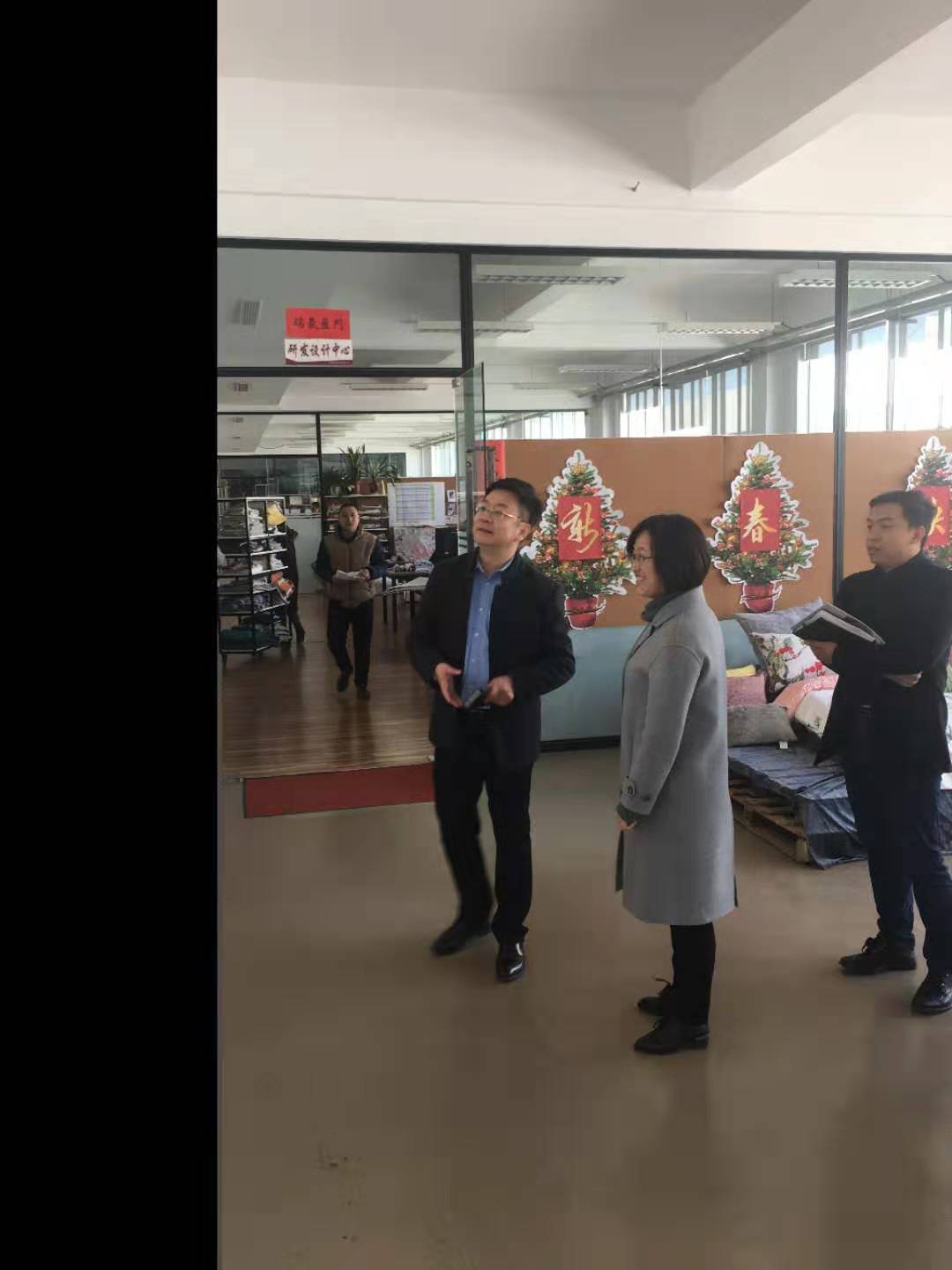 党总支副书记赵卉妍,团委书记张强,辅导员王睿、徐小惠走访烟台明远家用纺织品有限公司。